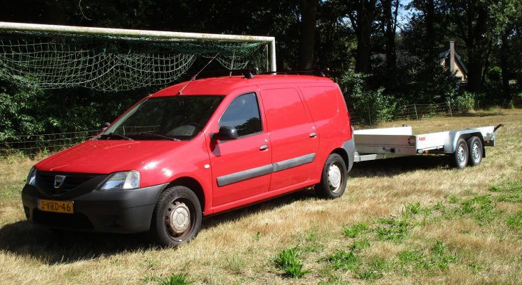 Hier kunnen we de capaciteit van een tandem aanhangwagen van Anssems waarderen om lichte voertuigen te vervoeren, gekoppeld aan de Dacia. Een mooie demonstratie van functionaliteit op zijn best.