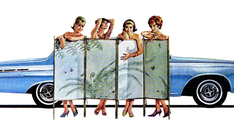 In een andere Cadillac-reclame uit 1963 werden vrouwen achter het stuur afgebeeld, maar altijd door een condescendente lens. De tekst beweerde dat “dames graag chauffeur spelen”, wat het idee versterkte dat deze auto’s vooral mannelijke voertuigen waren, magnanimously ter beschikking gesteld.